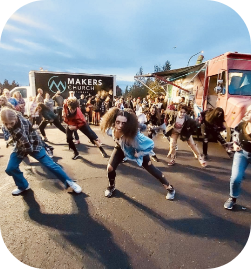 Makers Church NW has had an incredible year of outreach events. To start, we kicked off the fall season with “Waking the Dead”, our Halloween Trunk or Treat with music, candy, food trucks, and live fire performers. With 1200 people in attendance, this event was a huge success and served as a great opportunity to reach out to the community.